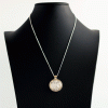 This pendant was handcrafted using an actual page from Merriam Webster’s Dictionary, so the paper has yellowed and aged accordingly.