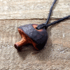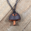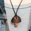 This is a hand-carved, one-of-a-kind necklace. Cut from the pit, or stone, of an avocado, this necklace features a simple mushroom or toadstool. It’s the perfect necklace for those who want to feel closer to nature or who have an earthy, natural style.