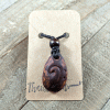 This is a hand-carved, one-of-a-kind necklace. Cut from the pit, or stone, of an avocado, this pendant features a simple bass clef, as well as a wooden bead as an accent. It’s the perfect necklace for those who love music or who have an earthy, natural style.