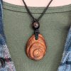 This is a hand-carved, one-of-a-kind necklace. Cut from the pit, or stone, of an avocado, this pendant features a simple circular design. It’s the perfect necklace for those who want to feel closer to nature or who have an earthy, natural style.
