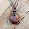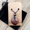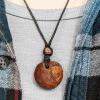 This is a hand-carved, one-of-a-kind necklace. Cut from the pit, or stone, of an avocado, this pendant features a simple heart, as well as a wooden bead as an accent. It’s the perfect necklace for those who want to feel closer to nature or who have an earthy, natural style.