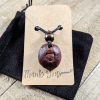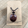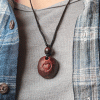 This is a hand-carved, one-of-a-kind necklace. Cut from the pit, or stone, of an avocado, this pendant features a simple heart, as well as a wooden bead as an accent. It’s the perfect necklace for those who want to feel closer to nature or who have an earthy, natural style.