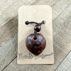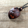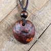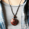 This is a hand-carved, one-of-a-kind necklace. Cut from the pit, or stone, of an avocado, this pendant features a one-of-a-kind design and color, as well as a wooden bead as an accent. It’s the perfect necklace for those who want to feel closer to nature or who have an earthy, natural style.