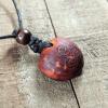 This is a hand-carved, one-of-a-kind necklace. Cut from the pit, or stone, of an avocado, this pendant features a triple spiral design, or triskelion. It’s the perfect necklace for those who want to feel closer to nature or who have an earthy, natural style.