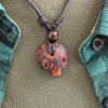 This is a hand-carved, one-of-a-kind necklace. Cut from the pit, or stone, of an avocado, this necklace features a simple mushroom or toadstool. It’s the perfect necklace for those who want to feel closer to nature or who have an earthy, natural style.